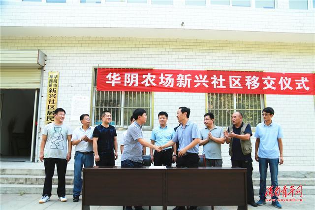 2018年8月7日,省農(nóng)墾集團華陰農(nóng)場與華陰市華西鎮(zhèn)政府就華陰農(nóng)場承擔(dān)的市政及社區(qū)職能移交簽訂了《補充協(xié)議》,標志著農(nóng)場社區(qū)正式移交當(dāng)?shù)卣?br />